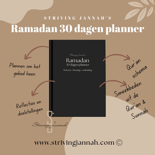 Striving Jannah biedt Islamitische planners die je helpen je doelen te bereiken en je leven naar de tevredenheid van Allaah te organiseren. Onze producten zijn voor eenieder die streeft naar succes en balans en die van de dunya een onderdeel wilt maken van de Deen.