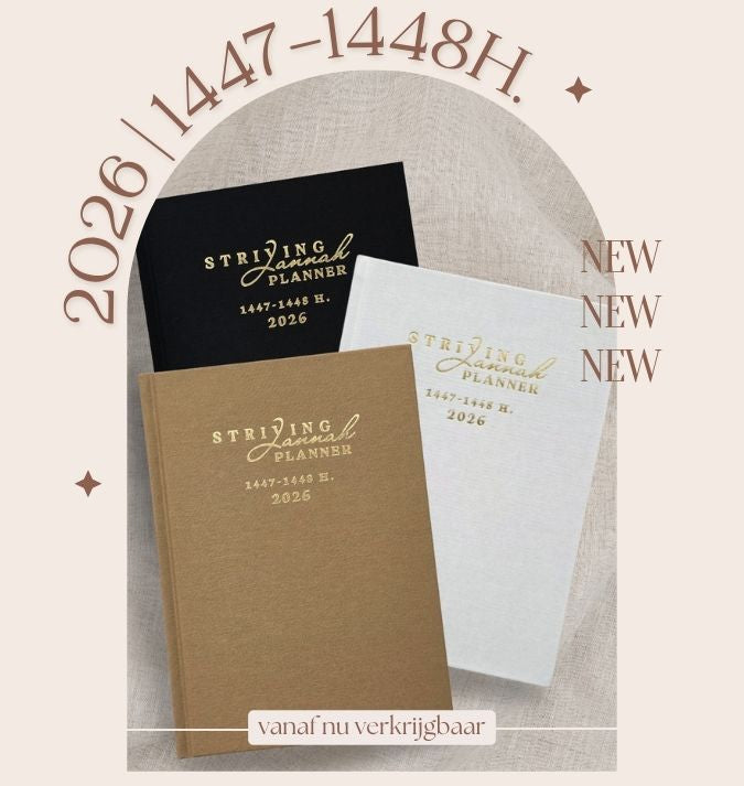 Verlang je naar rust, focus en groei, dan is de Striving Jannah Planner 2026 voor jou. Deze planner helpt je je tijd te bewaken en je daden te richten op wat écht telt. Want succes in dit leven betekent streven naar Allaah’s tevredenheid; met Jannah als einddoel in-chaa Allaah.