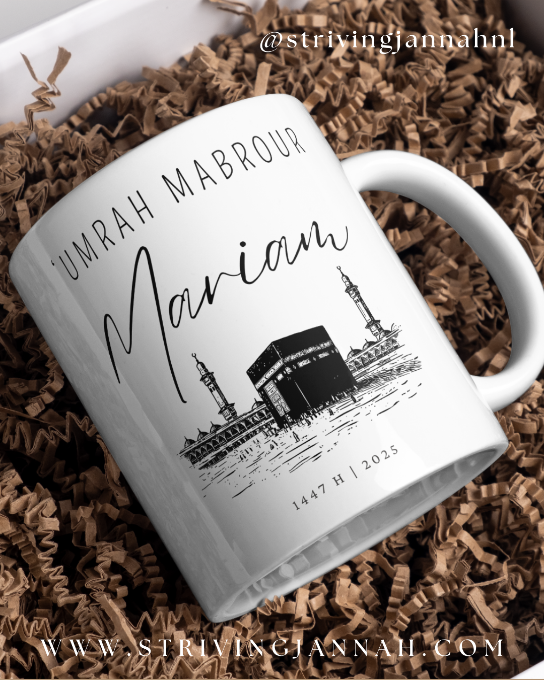 Zoek je een uniek aandenken voor iemand die op Hadj of 'Umrah is geweest? Onze gepersonaliseerde Hadj/'Umrah mokken zijn het perfecte cadeau. Voeg zelf een naam of datum toe om het extra bijzonder te maken. Ideaal als herinnering aan een spirituele reis vol overgave. Een liefdevol gebaar bij thuiskomst of als verrassing bij vertrek. Deze mok is niet alleen mooi maar ook betekenisvol.