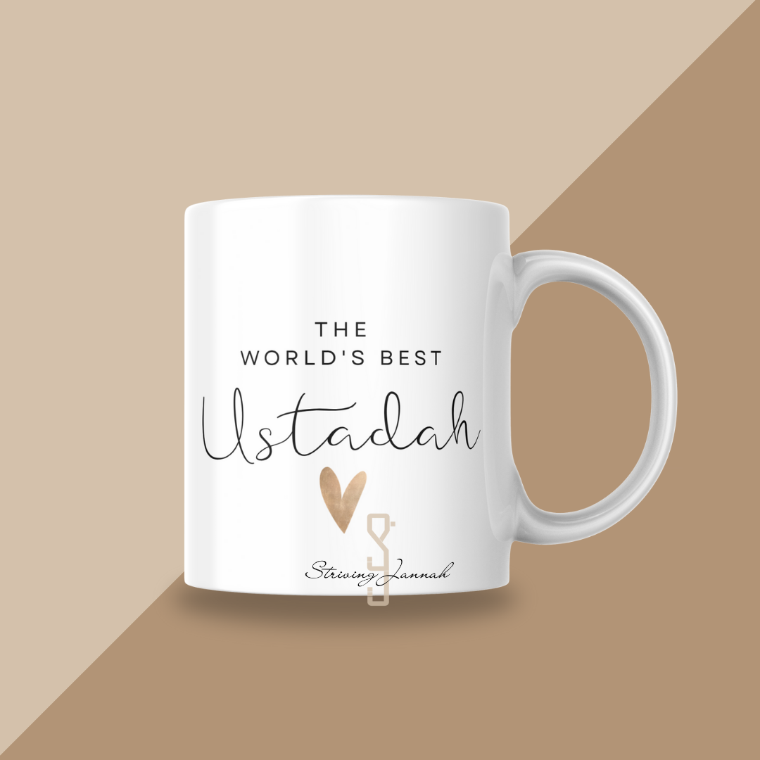 Zeg shokran op een unieke manier tegen jouw Ustadah. Deze mok met de opdruk The world's best Ustadah is een prachtig gebaar voor de vrouw die je islamitisch heeft begeleid, geïnspireerd en gesterkt. Perfect als cadeau na een lessenreeks, voor 'Eid of gewoon om te laten weten dat haar rol niet onopgemerkt is gebleven.